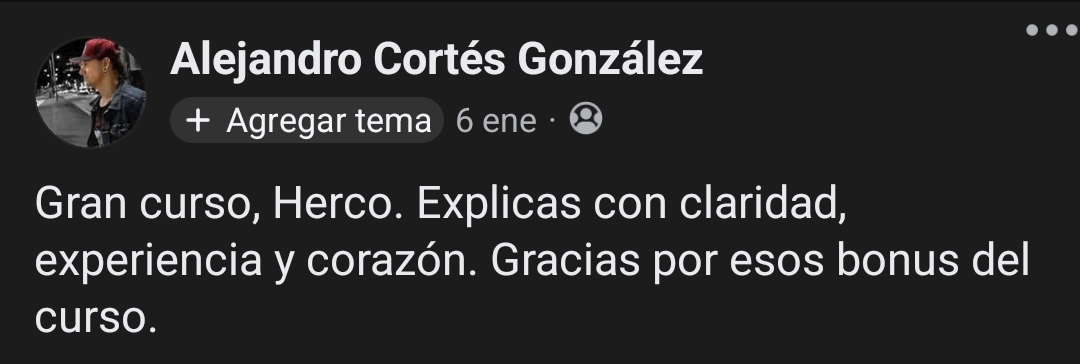 momento los hice, cosa que fue un error porque hizo que este curso lo compren